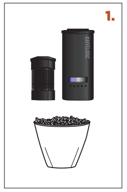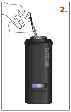 1. SCOOP – use a level scoop of green beans. [ Use the provided scoop. Otherwise measure 120–160mℓ or 90–120g. Do not overload. If you are using monsooned or decaf beans they are less dense and it is recommended that you load by weight ] |