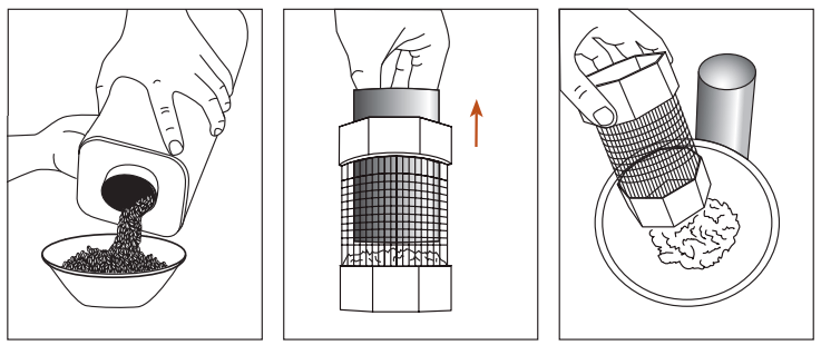 Allow several minutes for the aluminium chimney to cool fully. When it has cooled, take the lid off the chaff collector, remove the aluminium chimney, and empty the chaff into the compost. You may find you can do several roasts before you need to empty the chaff collector, but don’t let it fill beyond halfway up the mesh. After emptying make sure the aluminium chimney is replaced and fully seated in the plastic part.