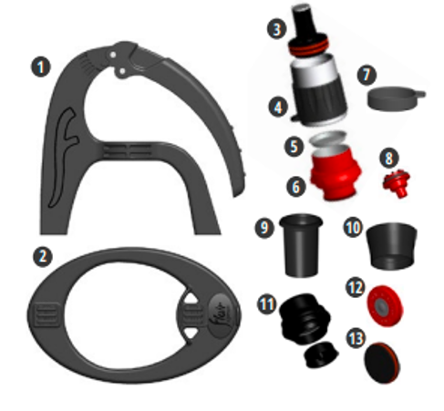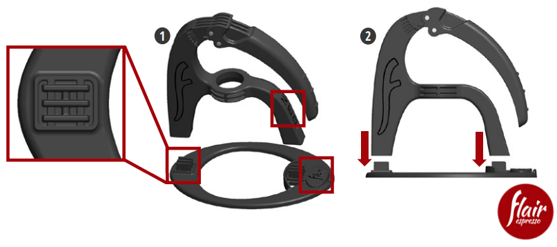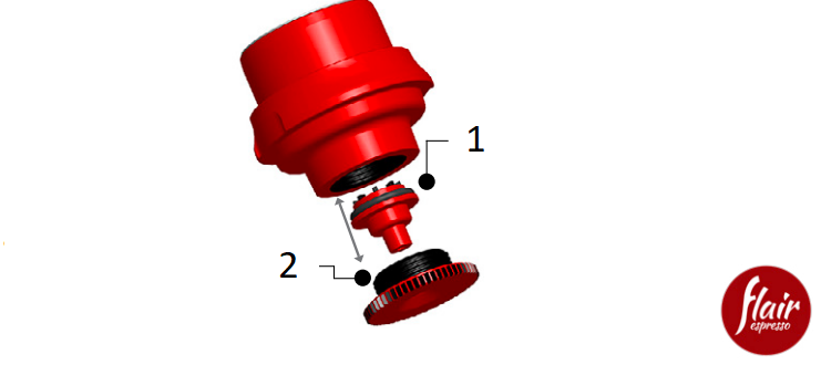 Your Flex comes with two “training discs” (red); one of which is installed in the plunger. Use this red disc when you have determined how much lever force is appropriate. The foil seal of the training disc (red) will break if excessive force is applied to the lever, indicating that your ground coffee is too fine. If the foil breaks, water will flow into the brew head. Repeat the test with a coarser grind (try the consistency of fine sea salt if using a Flow-Control Portafilter) and repeat the test with the second red disc.