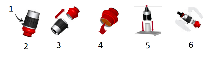 - Remove the piston using the dosing cup. Place cylinder over dosing cup and press down on a hard surface.