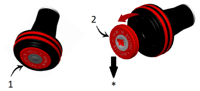 *Remove the broken valve by pulling it out by the small recess at the edge of the valve. Replace by pushing new valve into the recess on underside of piston, with the foil facing out.